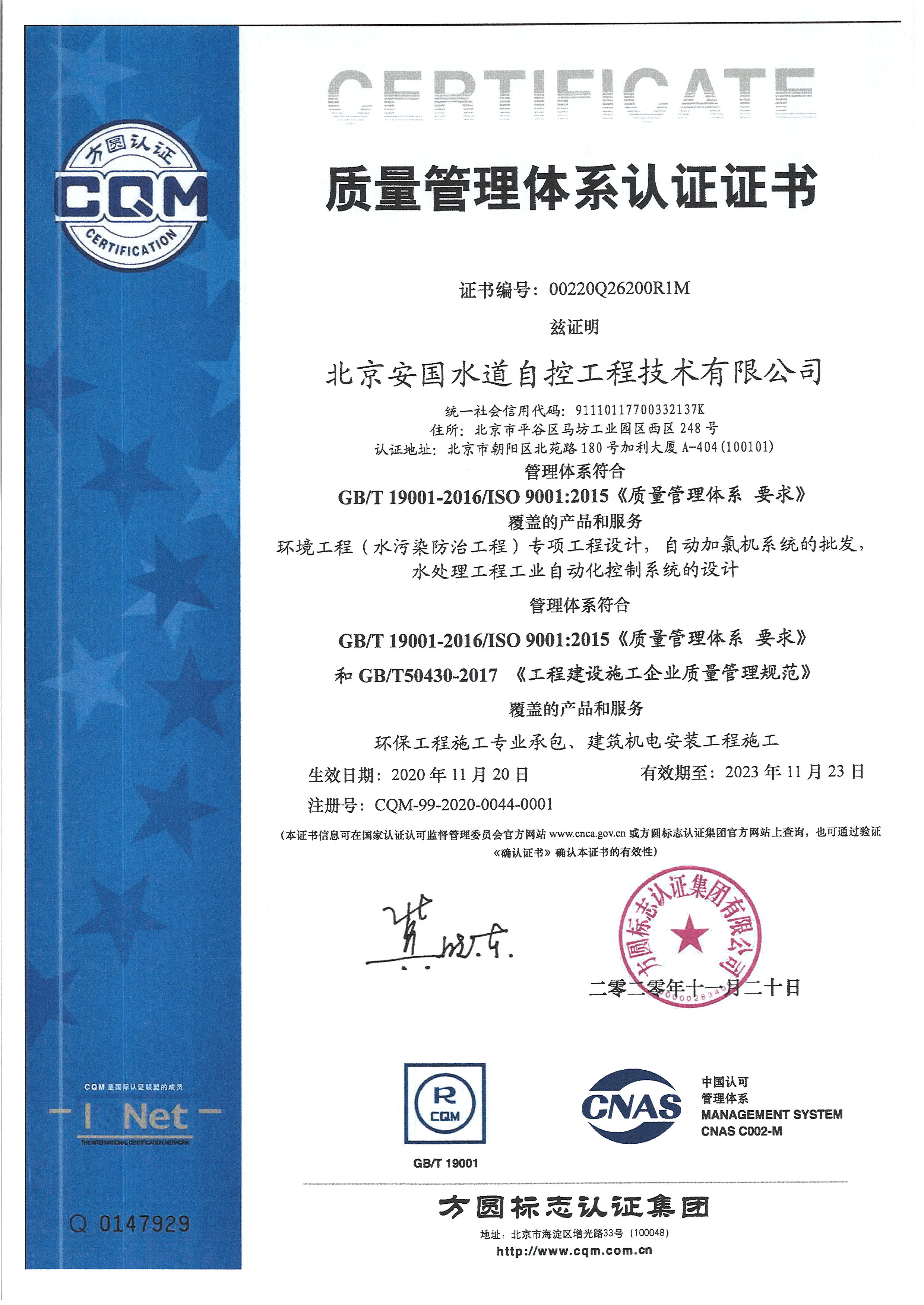 背景安國(guó)水道自控工程技術(shù)有限公司是注冊(cè)在北京市平谷區(qū)馬坊工業(yè)園區(qū)的高新技術(shù)企業(yè),是中國(guó)水處理行業(yè)及自控領(lǐng)域的知名企業(yè),在凈水廠、污水廠、循環(huán)水廠的水處理方面擁有國(guó)內(nèi)領(lǐng)先的工藝技術(shù)及調(diào)試經(jīng)驗(yàn)。